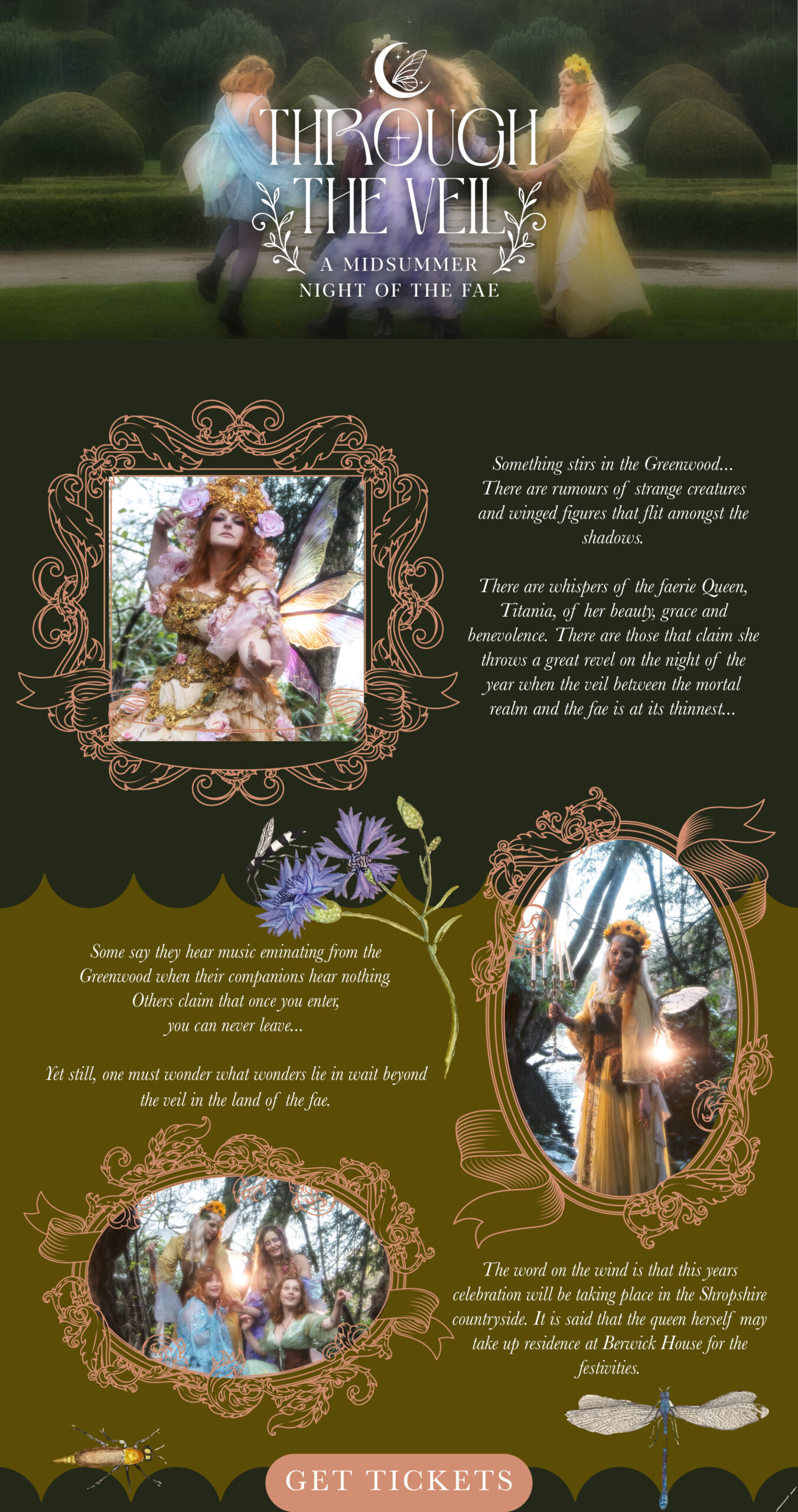 On this night, mortals are stepping into Queen Titania’s realm. To keep the illusion alive, guests are expected to dress in fantasy, folklore, woodland, fae, or myth-inspired attire.